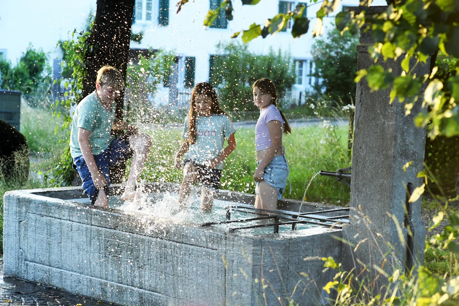 Anstatt des Kneippens kann man mit Kindern auch eine Brunnen-Wanderung machen und von Brunnen zu Brunnen ziehen und sich dazwischen immer wieder aufwärmen.