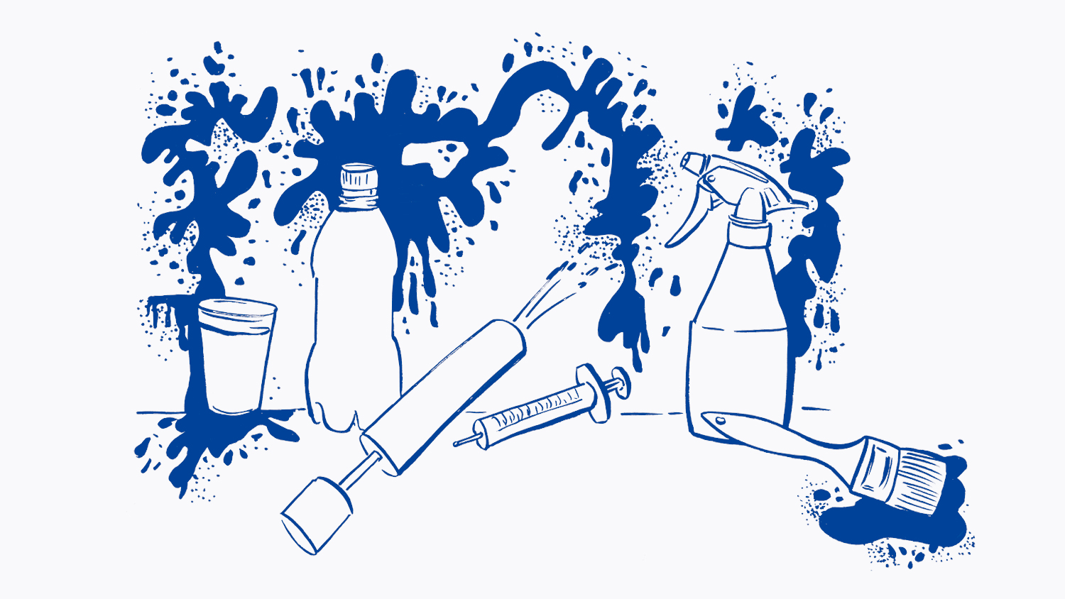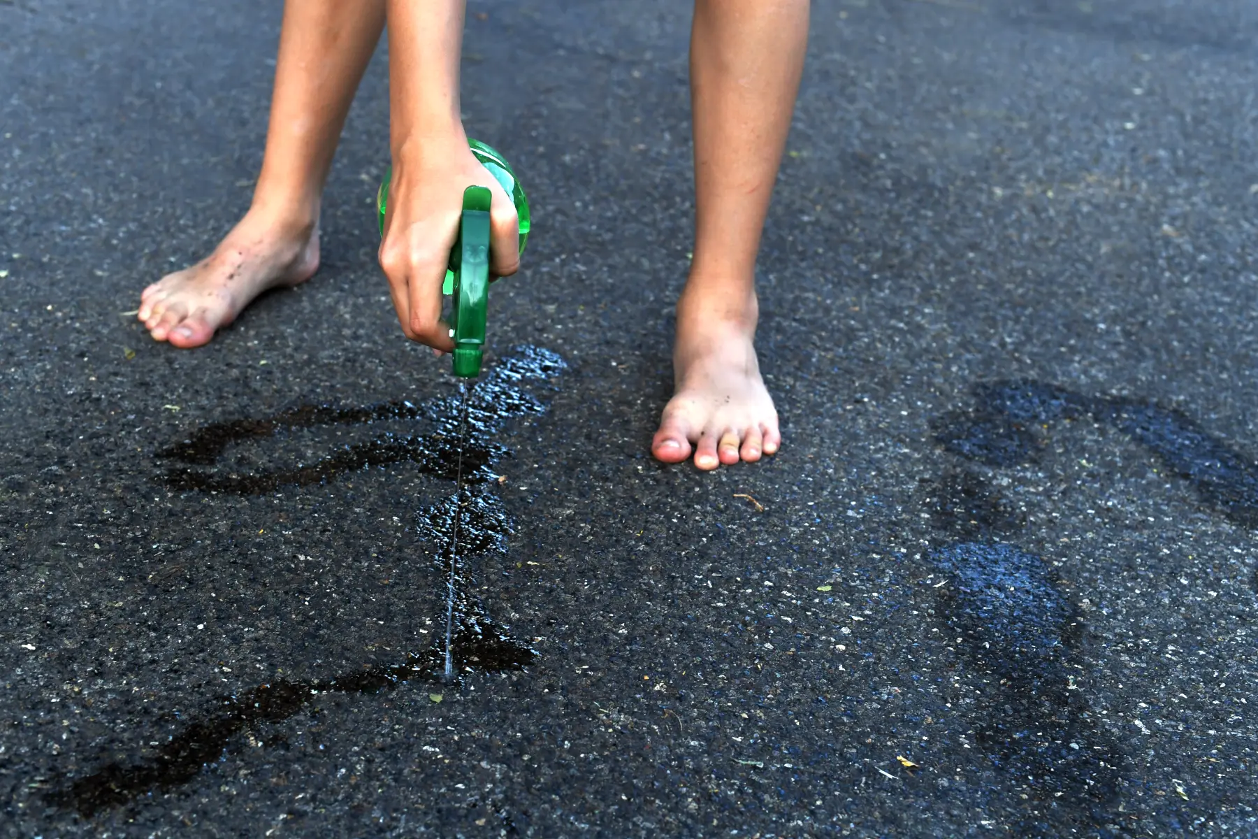 Mit Wasser aus Bechern, PET-Flaschen, Spritzpistolen, Spritze, Sprühflaschen, Pinsel o.ä. auf Sand, Steine oder Asphalt Figuren "zeichnen", indem das Wasser ausgeleert, gespritzt etc. wird.