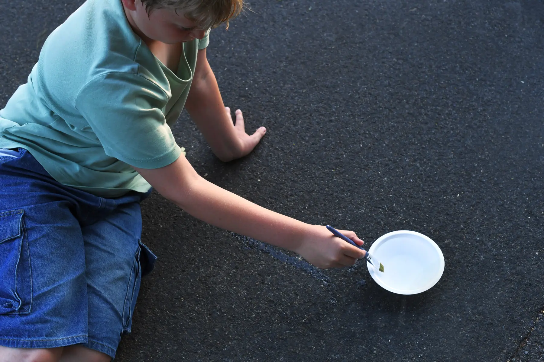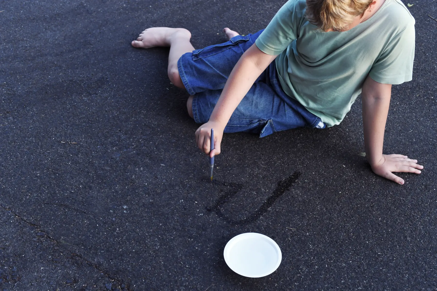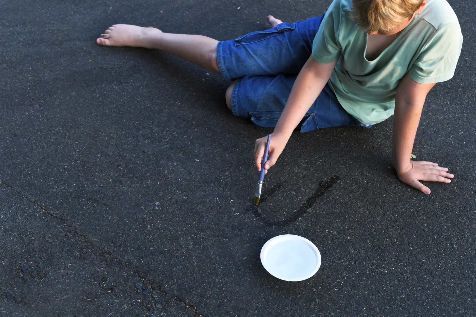 An einem warmen, sonnigen Tag siehst du das Wasser verdunsten: Male mit Wasser auf Sand, Steine oder Asphalt. Erlebe, wie deine Kunstwerke schnell verdunsten und unsichtbar werden.