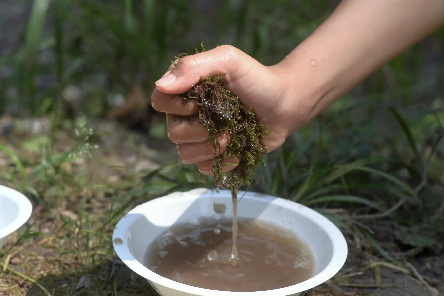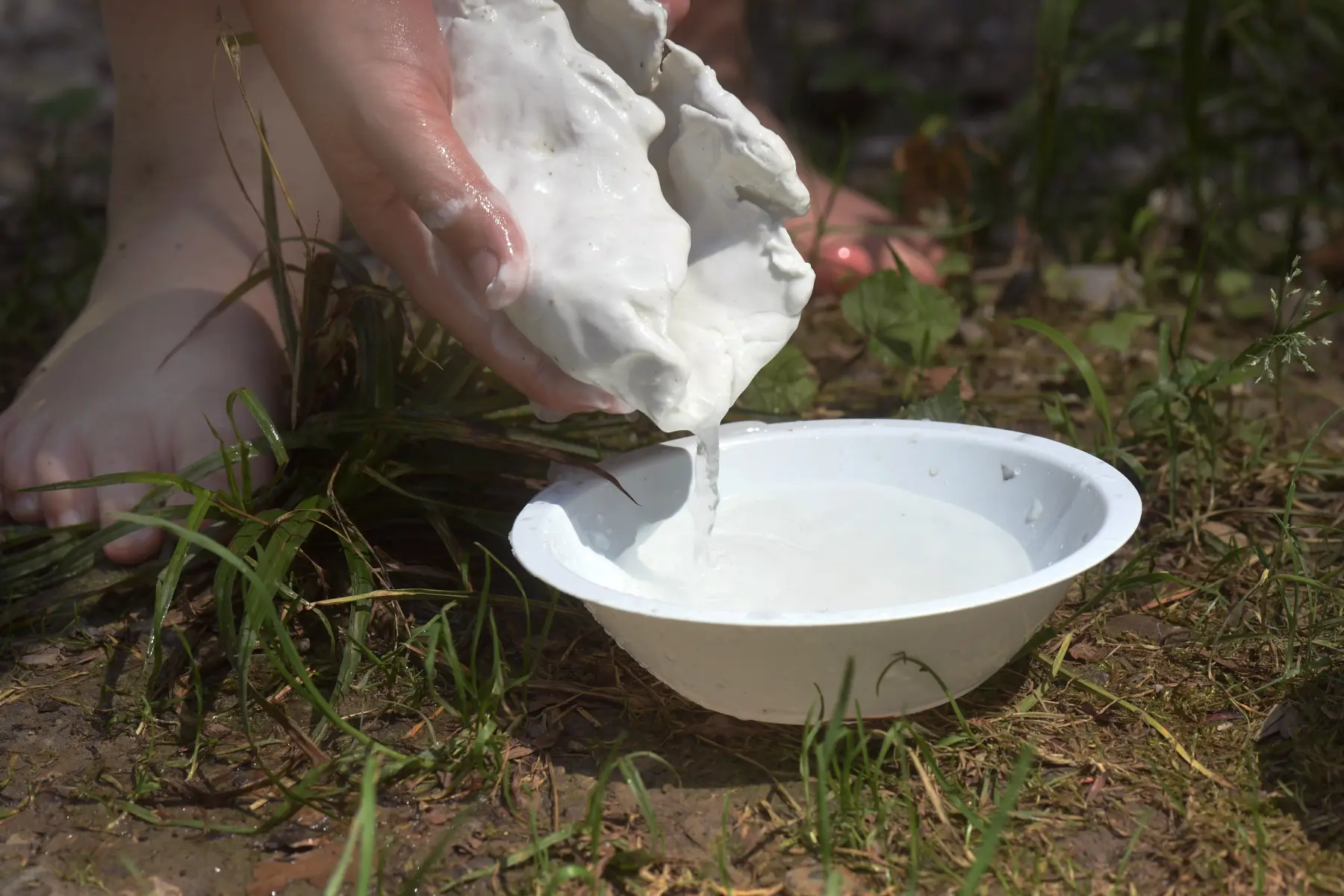 Stafette: Wer schafft es, am schnellsten einen Becher mit Wasser zu füllen? Zum Transportieren darf nur ein selbst gemachtes Gefäss aus Naturmaterialien benützt werden. Der Start ist bei der jeweiligen Wasserquelle (z.B. Brunnen).